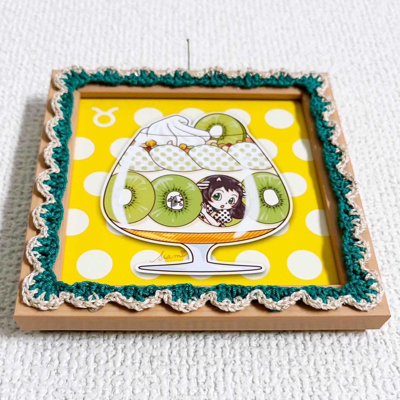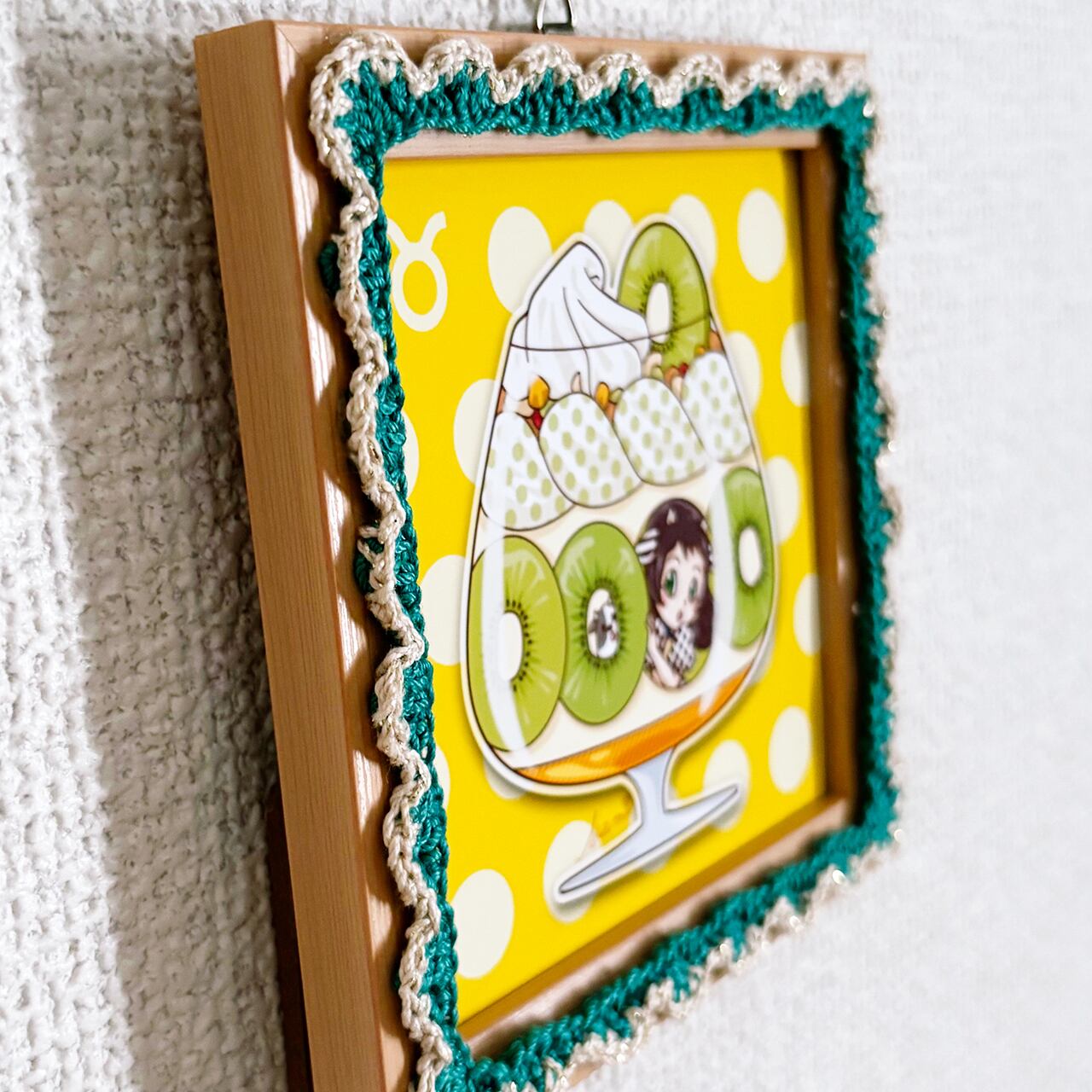 デジタルイラストとかぎ針編みを組み合わせた、額装作品です。