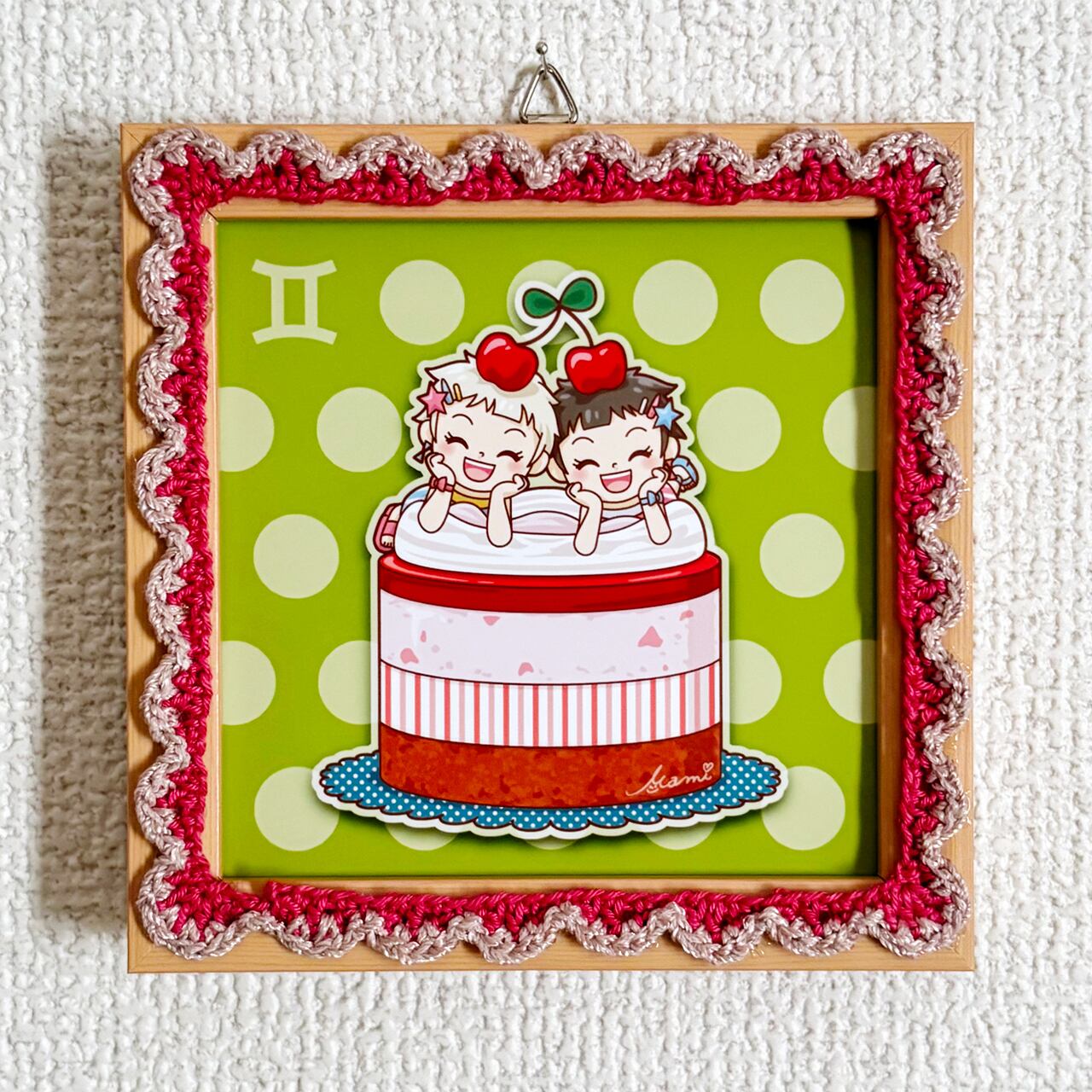 デジタルイラストとかぎ針編みを組み合わせた、額装作品です。
