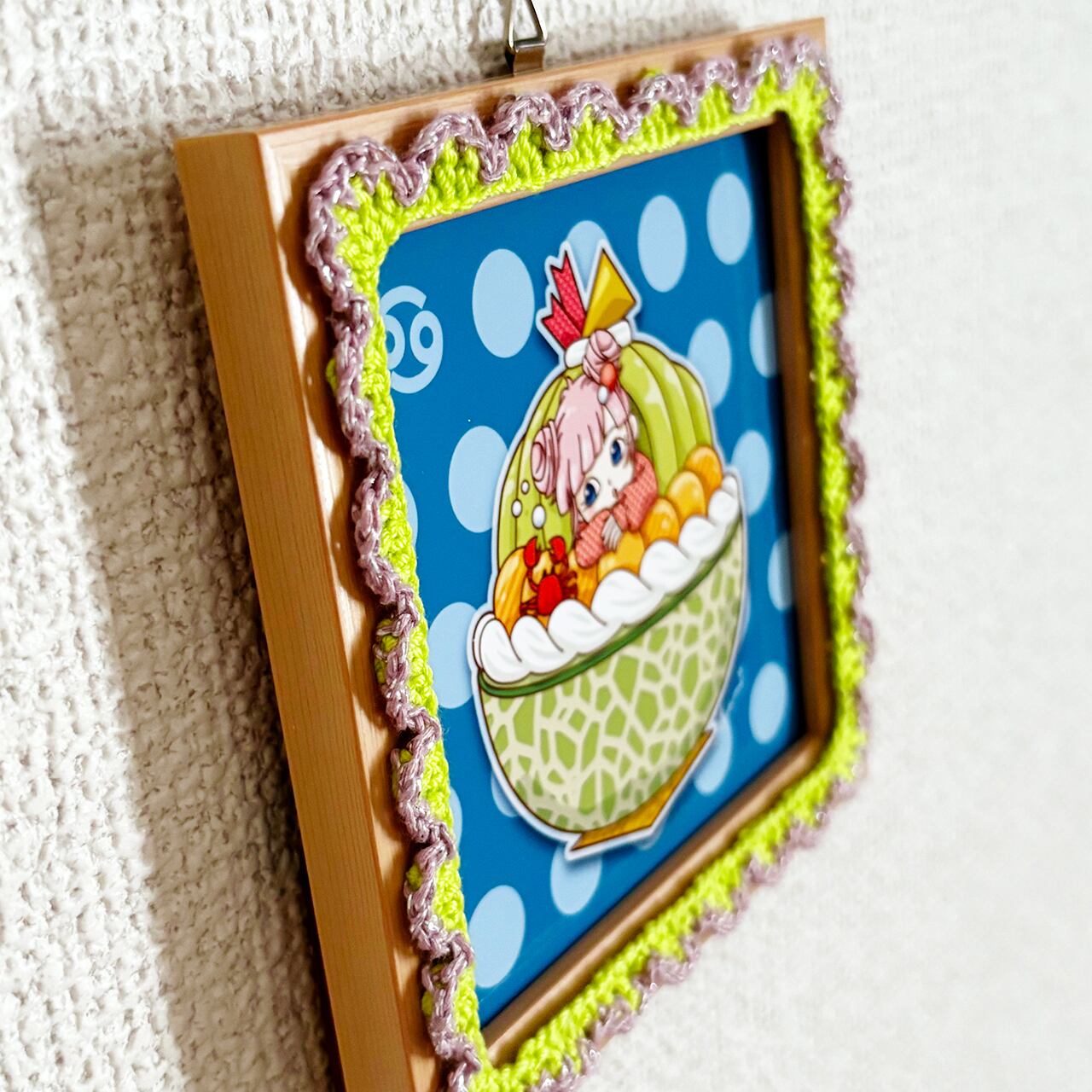 デジタルイラストとかぎ針編みを組み合わせた、額装作品です。