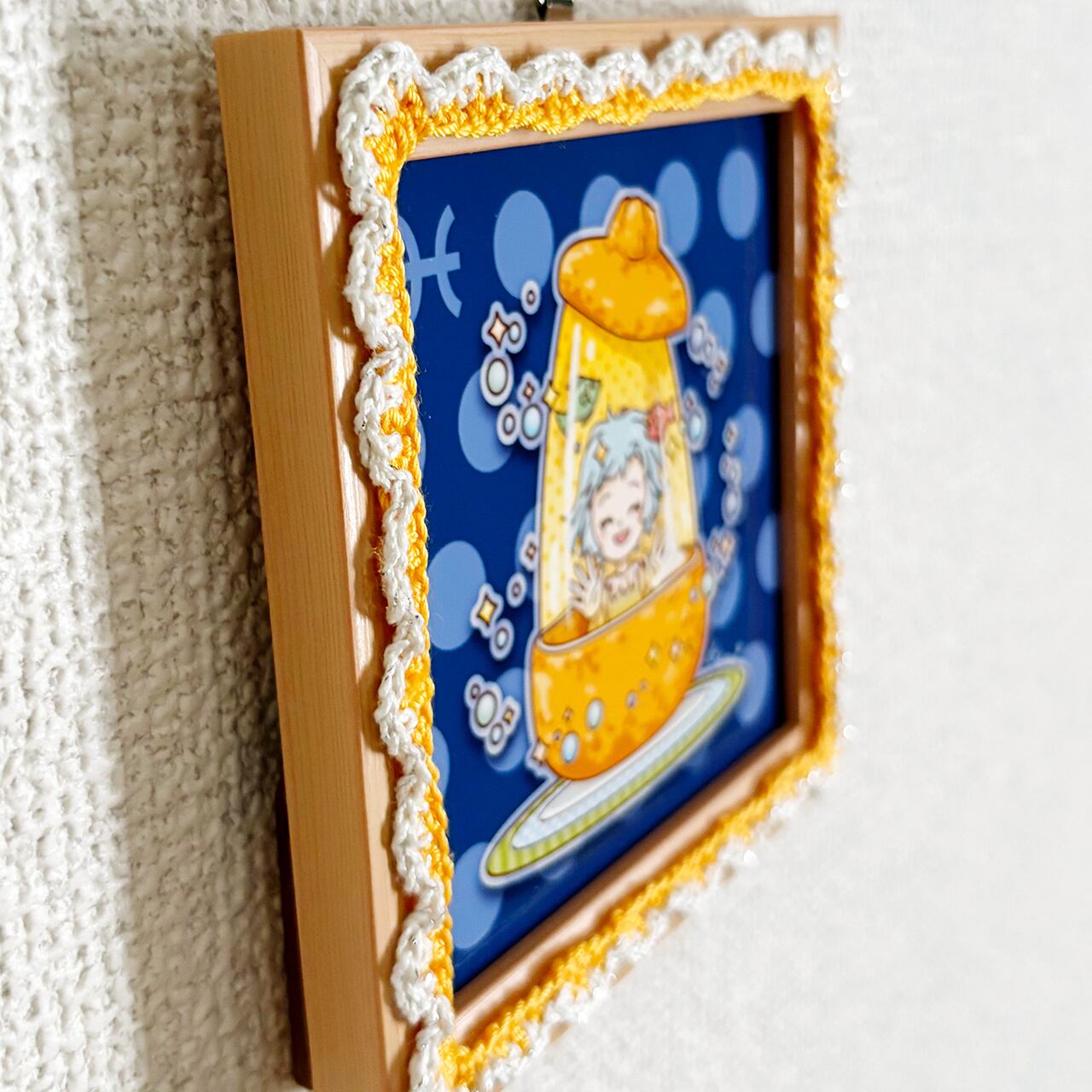 デジタルイラストとかぎ針編みを組み合わせた、額装作品です。