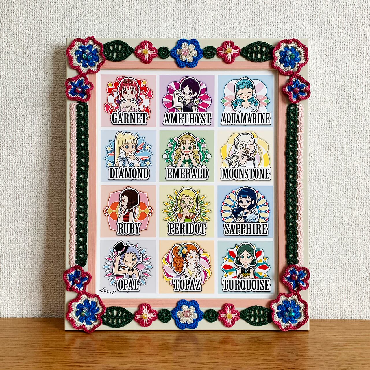 ★SALE★【イラスト×かぎ針編み額装】Girls-2 ~Birth Stone~(12の誕生石)