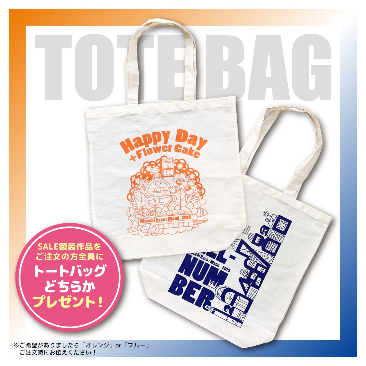 トートバッグ(オレンジorブルー)どちらかプレゼント!