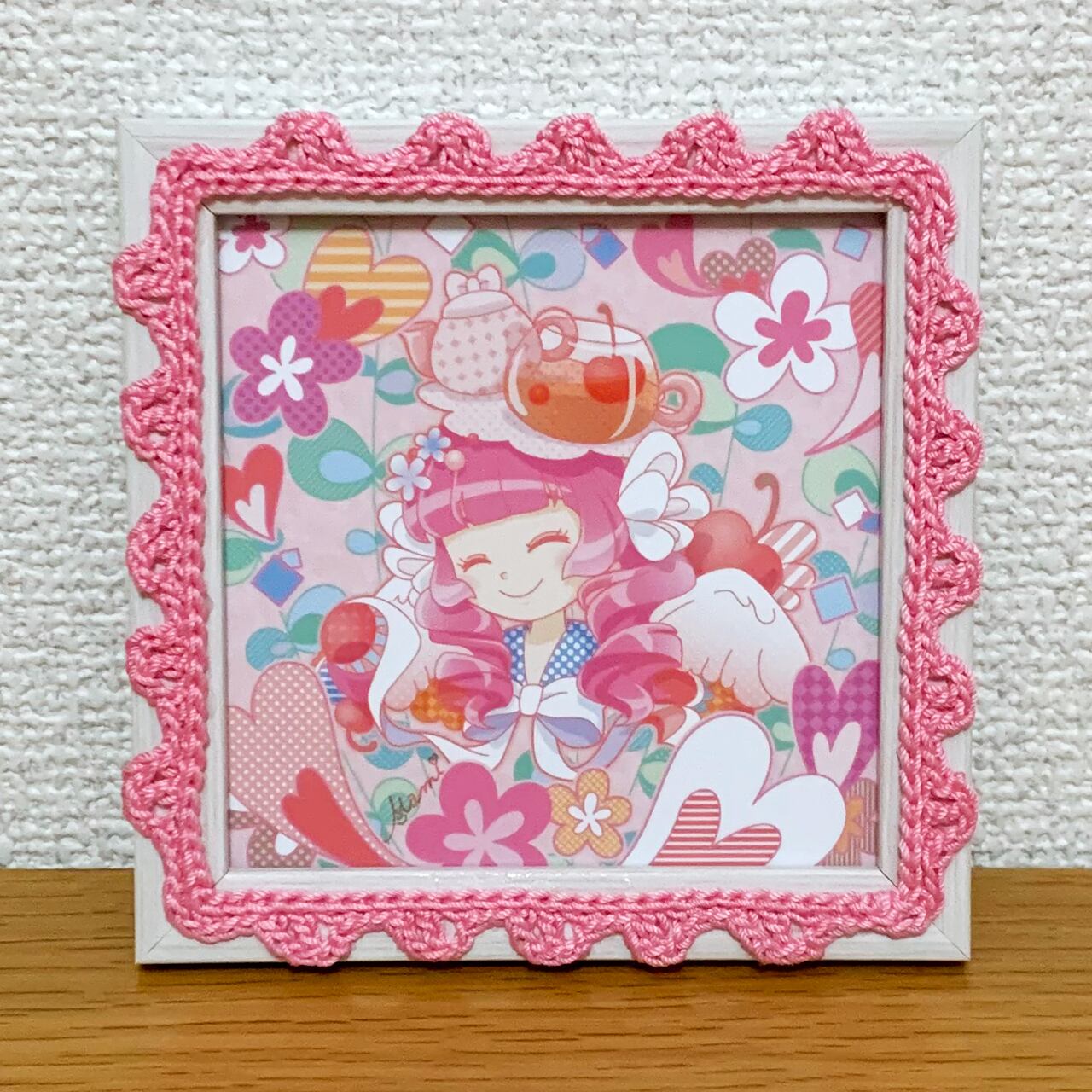 ★SALE★【イラスト×かぎ針編み額装】チェリーティー