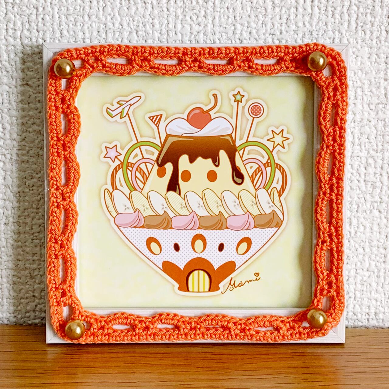 ★SALE★【イラスト×かぎ針編み額装】バナナプリン