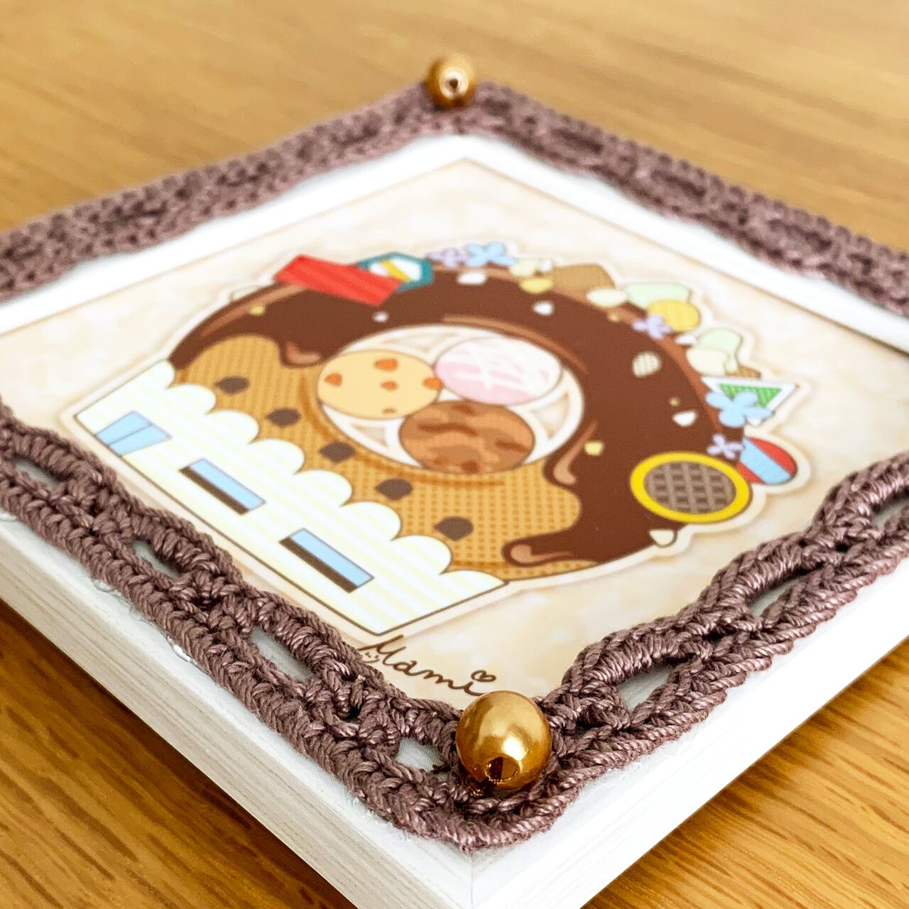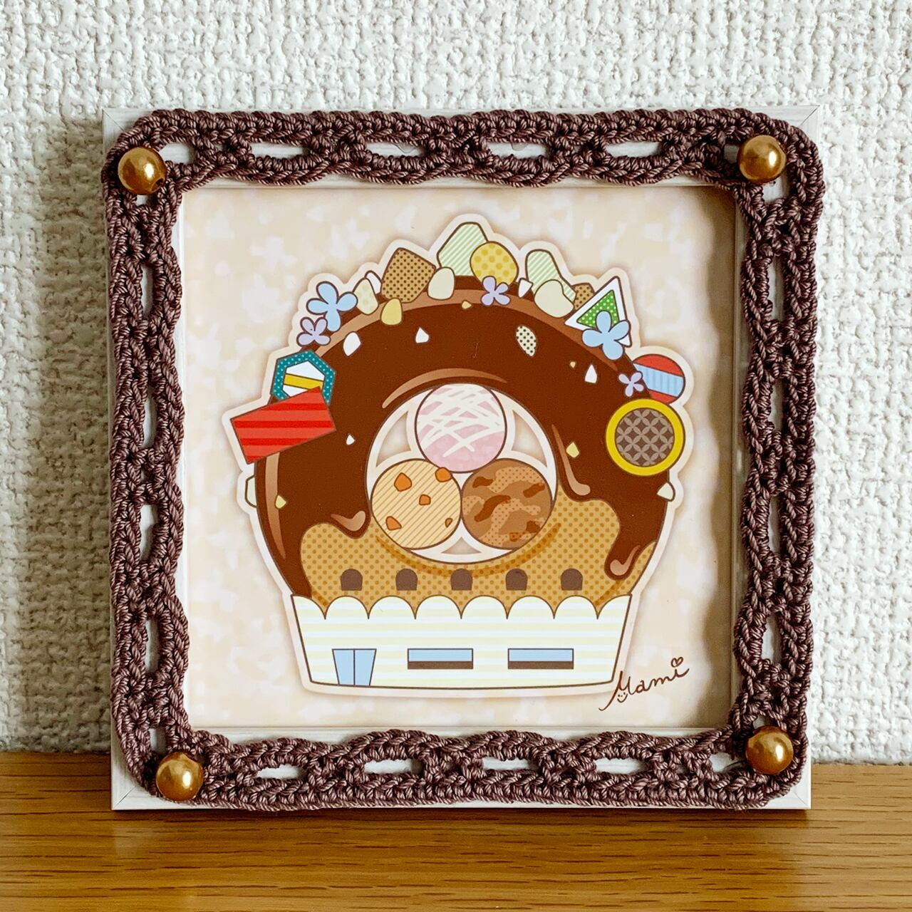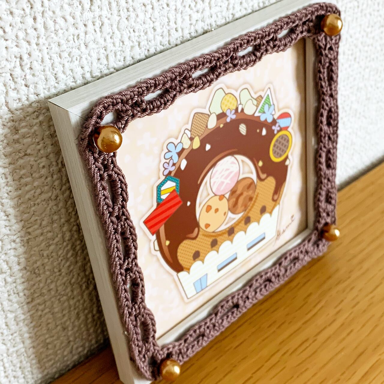 ★SALE★【イラスト×かぎ針編み額装】チョコドーナツ
