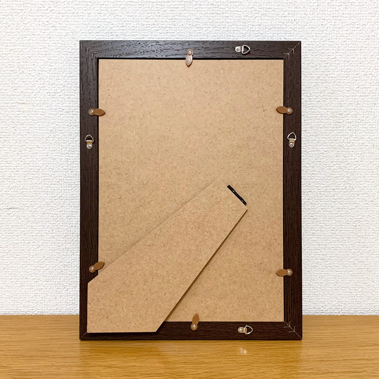・背面、付属/スタンド、吊り紐用の金具4箇所、吊り紐