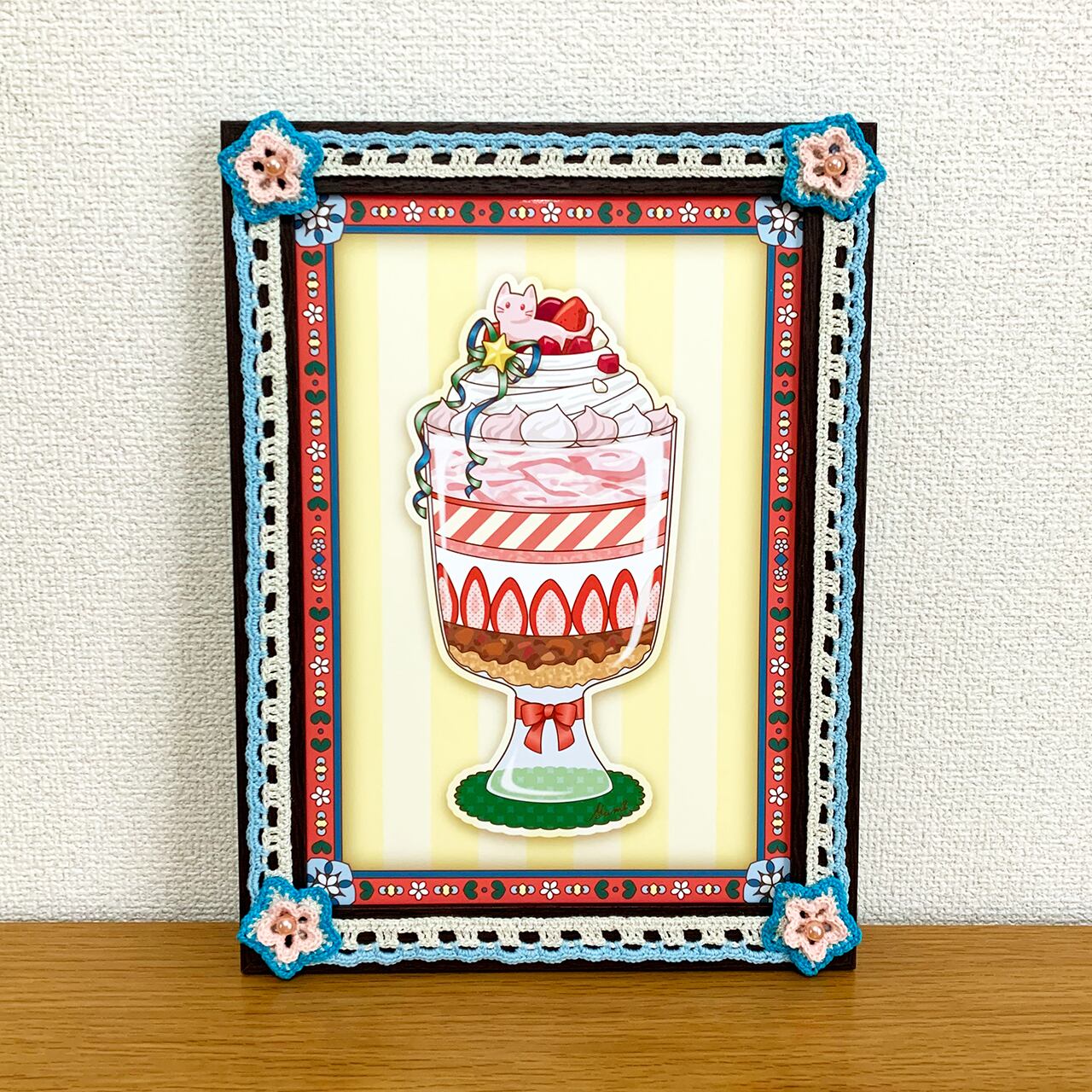 デジタルイラストとかぎ針編みを組み合わせた、額装作品です。