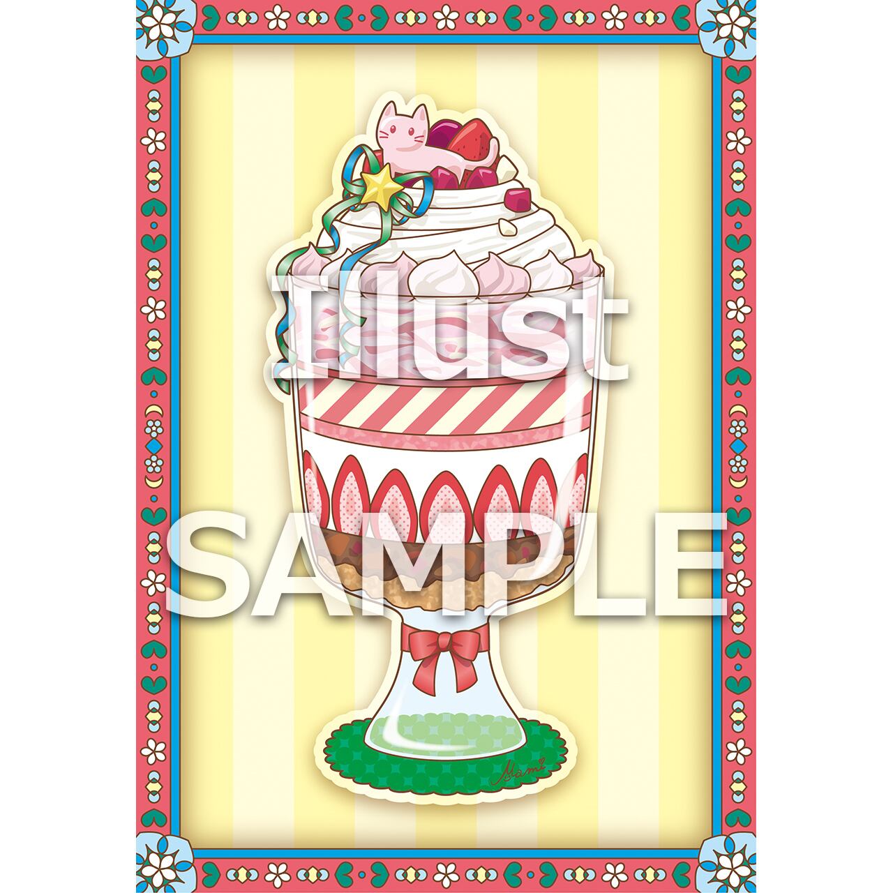 「スイーツ」をメインに「猫」をイラスト内に潜ませて、