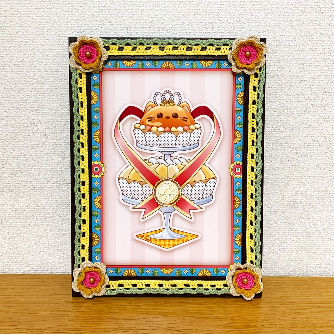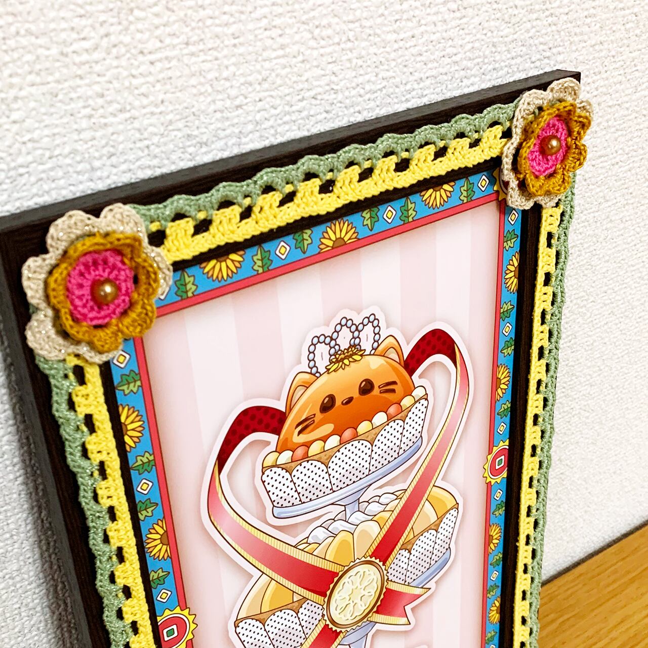デジタルイラストとかぎ針編みを組み合わせた、額装作品です。