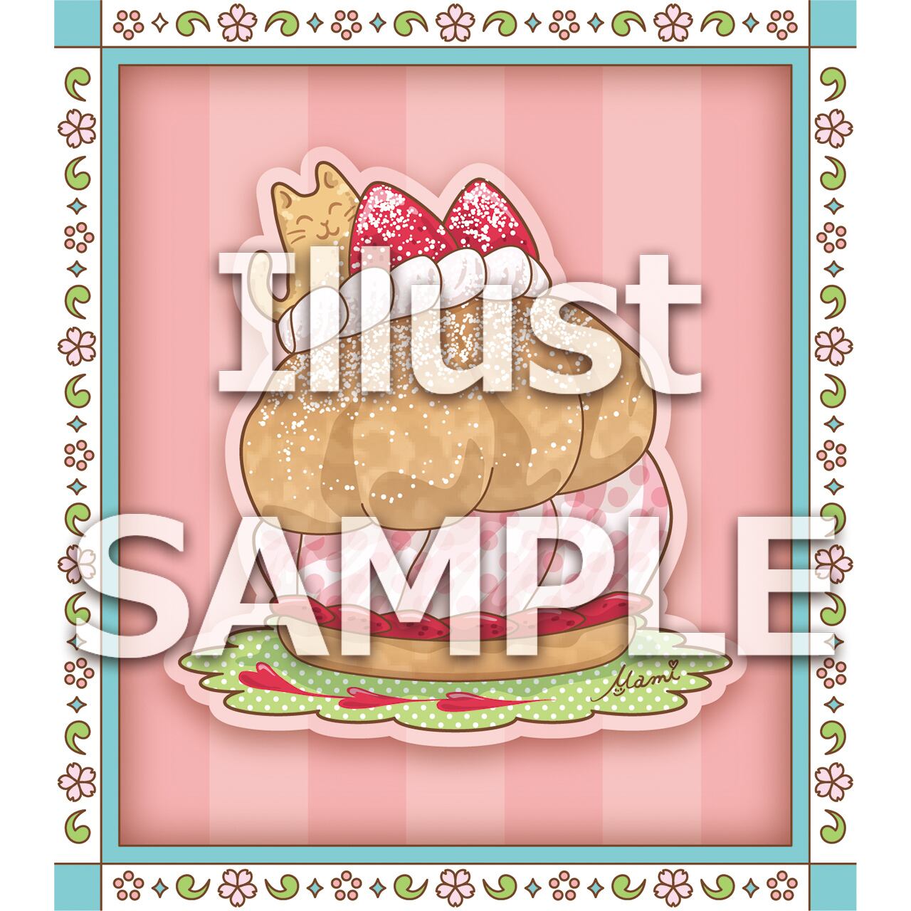 「スイーツ」をメインに「猫」をイラスト内に潜ませて、