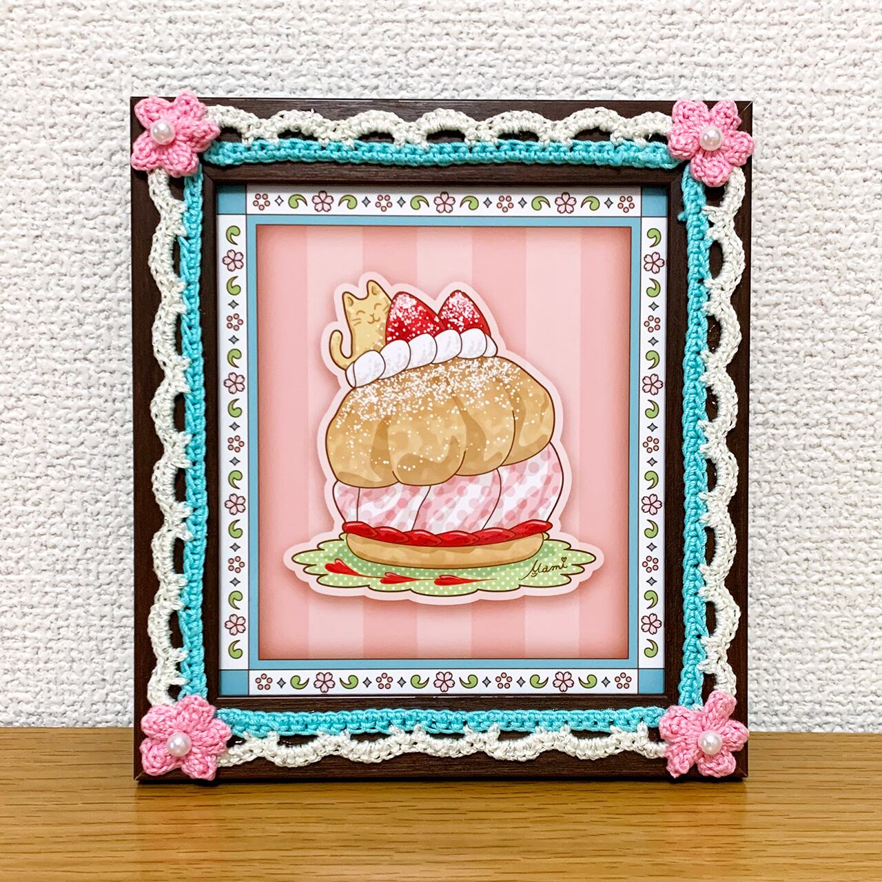 デジタルイラストとかぎ針編みを組み合わせた、額装作品です。