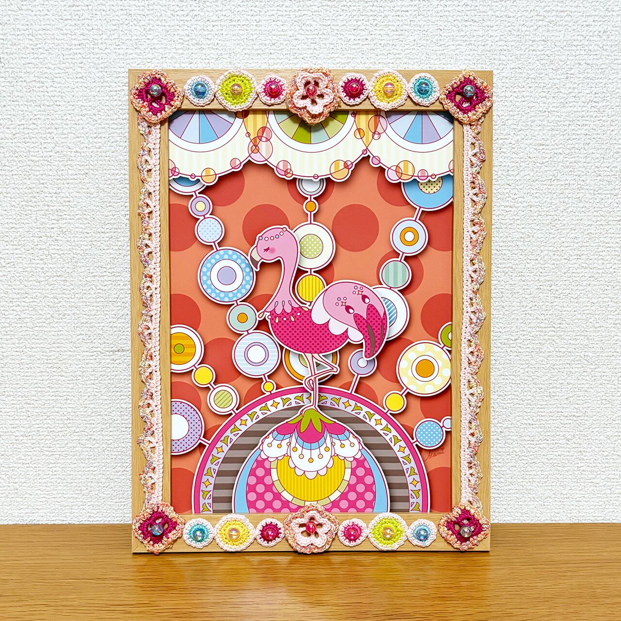 ★SALE★【イラスト×かぎ針編み額装】Flamingo