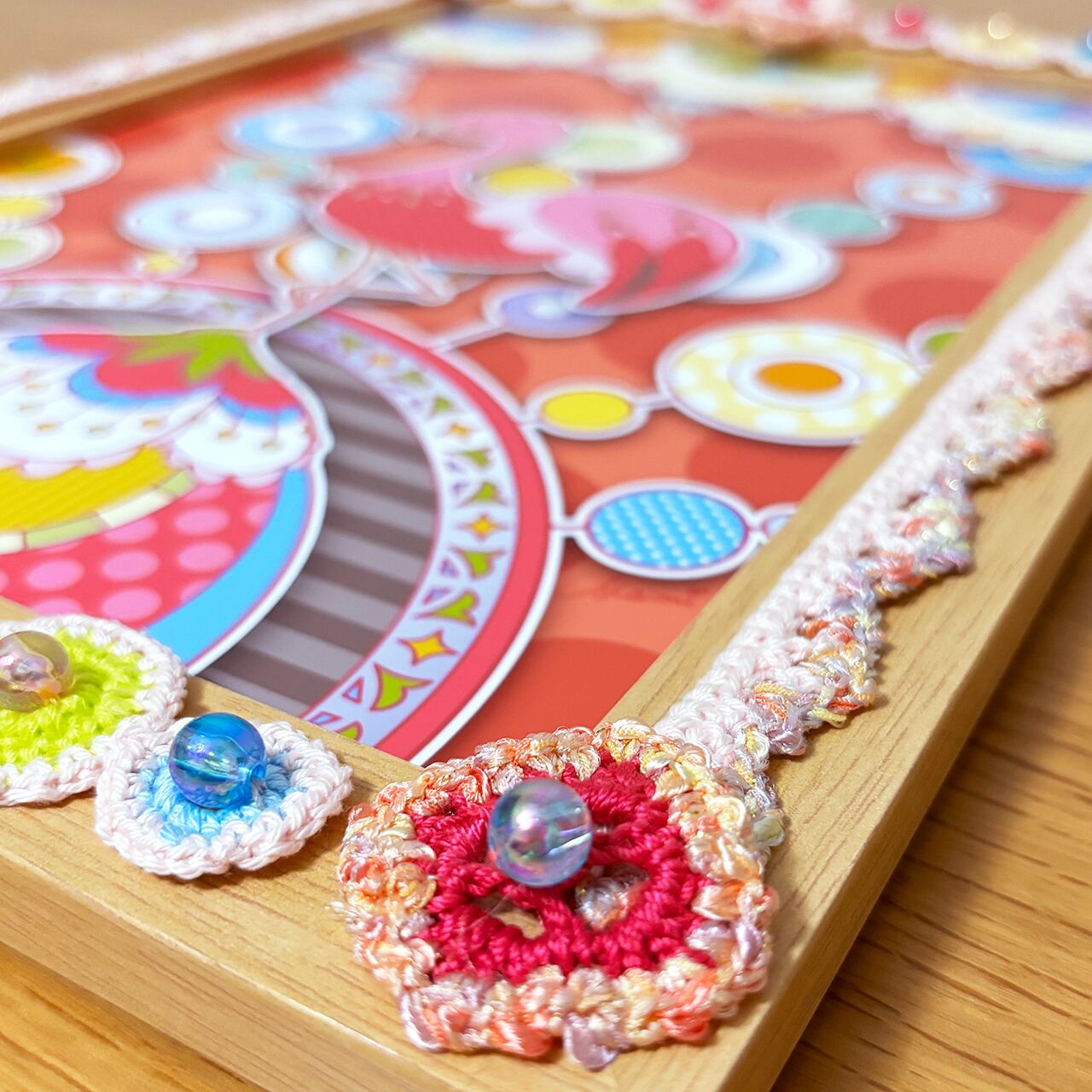 デジタルイラストとかぎ針編みを組み合わせた、額装作品です。