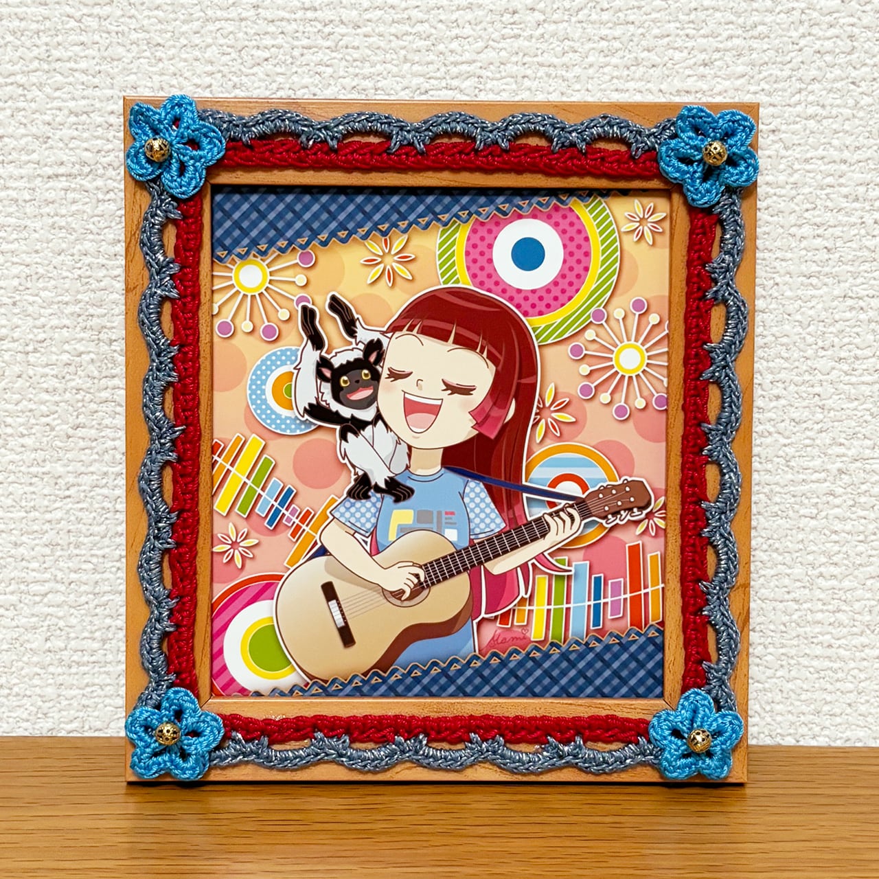 デジタルイラストとかぎ針編みを組み合わせた、額装作品です。