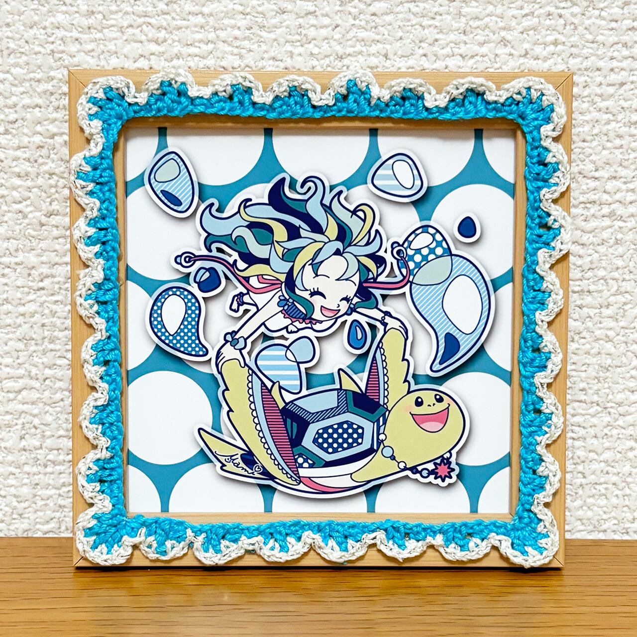 ★SALE★【イラスト×かぎ針編み額装】カメさんとアクアさん