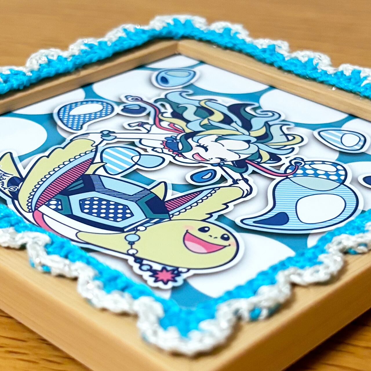 デジタルイラストとかぎ針編みを組み合わせた、額装作品です。