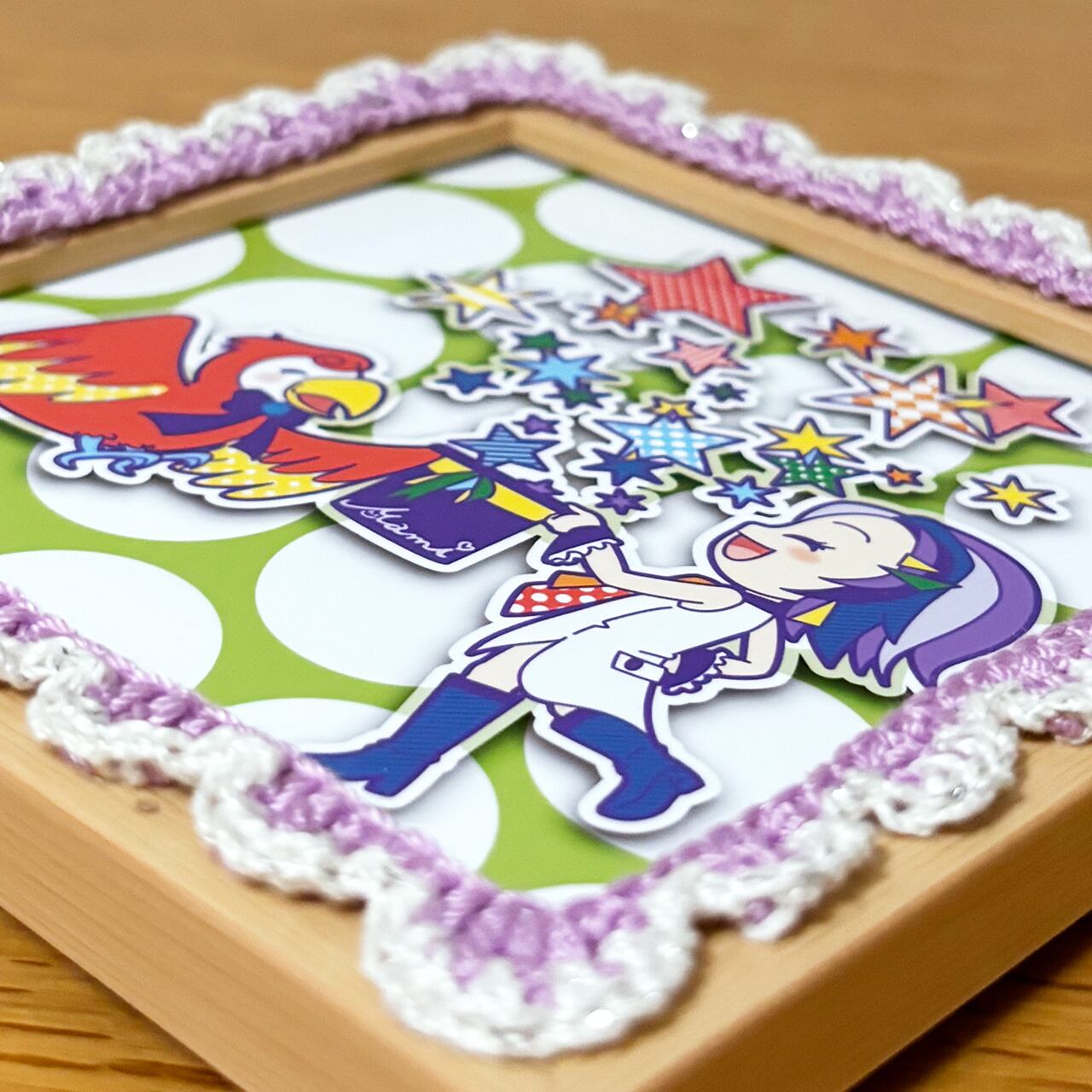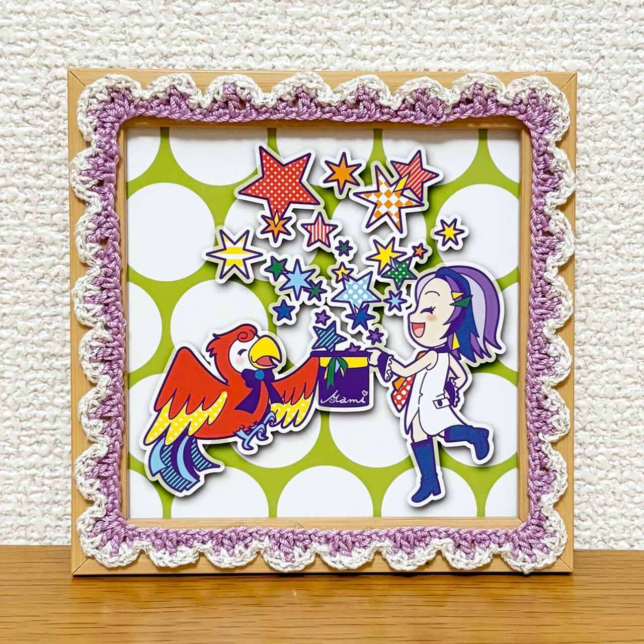 デジタルイラストとかぎ針編みを組み合わせた、額装作品です。