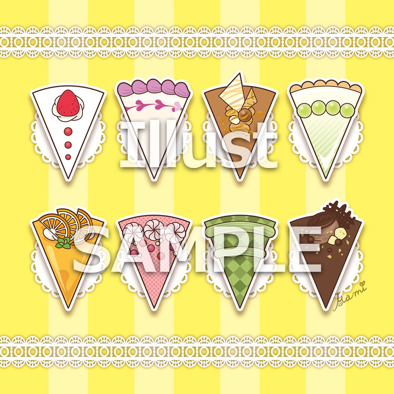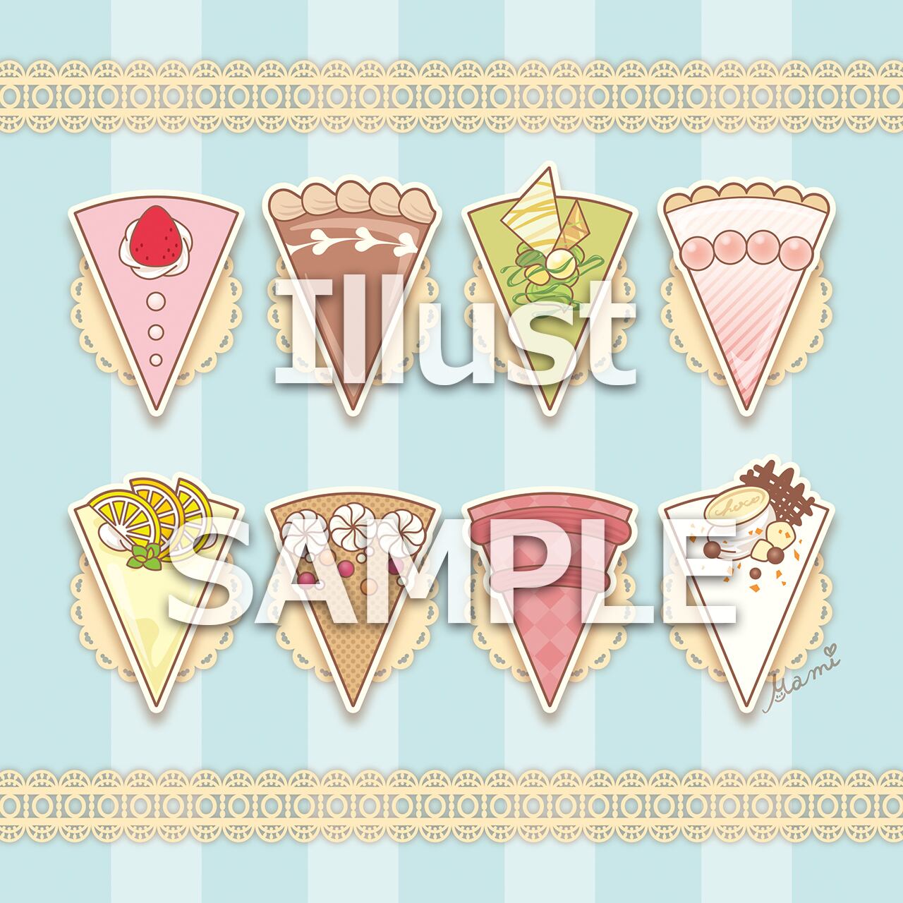 24種類に展開、いろんなケーキを描いてみました。