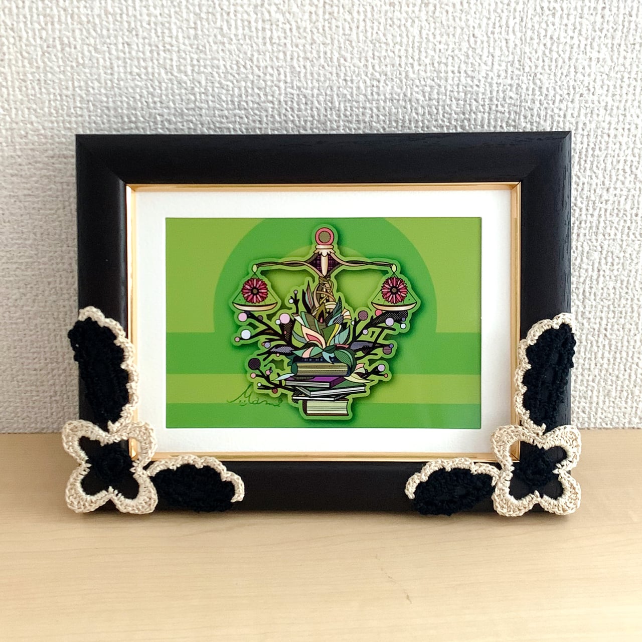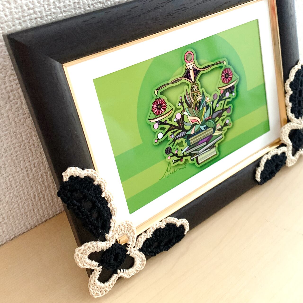 デジタルイラストとかぎ針編みを組み合わせた、額装作品です。